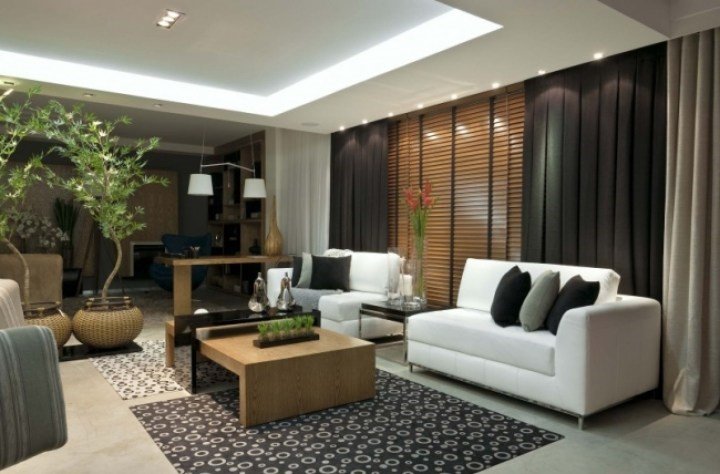 - Sala de estar: persianas de madeira, que trazem um clima rústico e elegante.