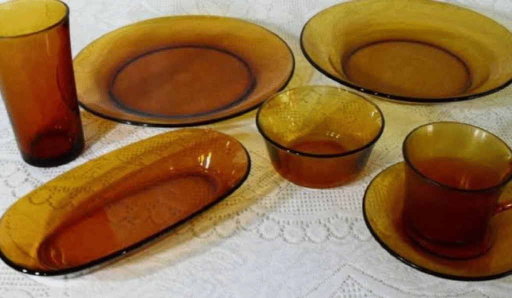 A cor âmbar, em especial, virou sinônimo de resistência e praticidade. O prato era tão durável que ganhou fama de “inquebrável”, resistindo a quedas que destruiriam qualquer outro tipo de louça. Além disso, suportava altas temperaturas, sendo perfeito para uso intenso.